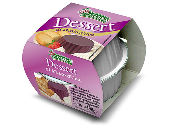 Il Dessert di Mosto d’Uva: è un dessert al cucchiaio a base di mosto d’uva dolcificato con mosto concentrato anziché lo zucchero per dare al prodotto un valore in più. Proposto in un nuovo formato con vaschette più piccole ma in confezioni doppie, il Dessert di mosto d’uva è un prodotto leggero gustoso e facile da mangiare in qualsiasi momento della giornata.